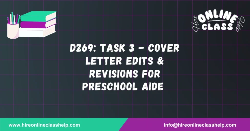 D269: Task 3 – Cover Letter Edits & Revisions for Preschool Aide